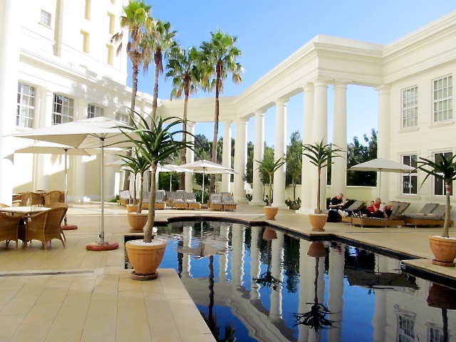 The staff is real friendly, the food is great. They have a shuttle that departs to the V & A Waterfront every hour & they assist you with your local travel needs. They have 24 hour room service. A bar, gorgeous pool area with couches, loungers & tables. A pianist on a grand piano in reception & during dinner. Accommodation includes breakfast which is a heavenly buffet spread with everything from pork sausages to waffles. At reception they even serve water flavoured with fresh cuts of fruit – pineapple, melon & grapefruit. Everything is so clean, white, fresh and classic. It really was nice being treated to luxury and getting away from the regular peanut butter sandwich & oros routine at home. Noah and Benjamin especially loved it, and the chef & hotel managers treated them something special. I wish you could have seen their faces at the sight of their very first dessert buffet.
